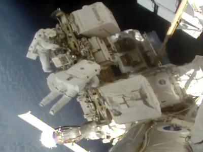 科克和黑格携手完成换电池的太空漫步任务。(蜘蛛网eeook.com...
