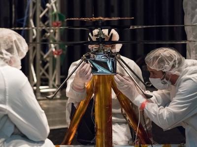 NASA火星直升机完成试飞。火星直升机(左)将与“火星2020号”...