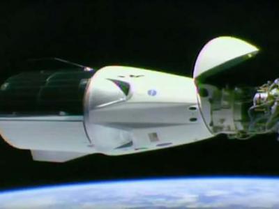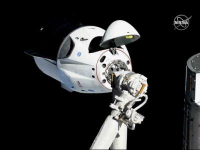 美国新型宇宙飞船“龙2”(Dragon-2)成功与国际空间站对接视...