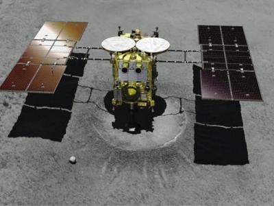 隼鸟2号成功降落“龙宫”。图为电脑模拟图。JAXA人员获悉探测...