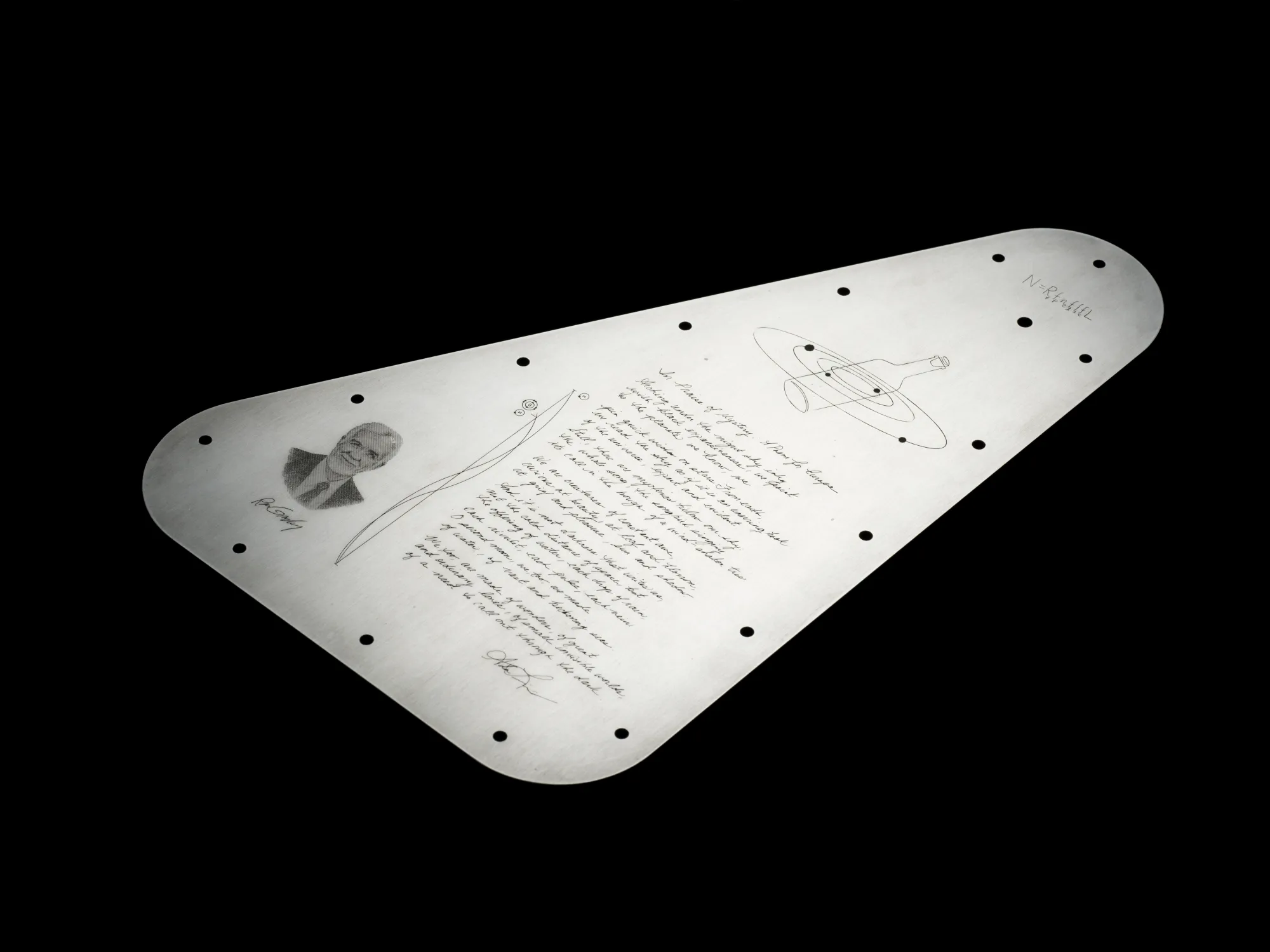安装在美国国家航空航天局“欧罗巴快船”飞船上的纪念板的这一侧,有美国桂冠诗人阿...