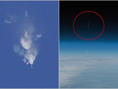 火箭升空途中故障(左图),国际太空站的太空人拍到事发一刻(...