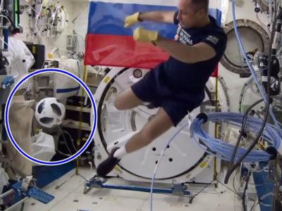 俄罗斯宇航员把2018年世界杯比赛用球Tel