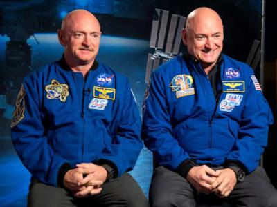 2015年1月一场记者会上,天文学家史考特.凯利(右)与双胞胎...