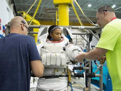 埃普斯(中)早前接受太空漫步训练。埃普斯原本将成为首位在国...