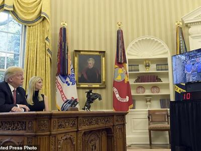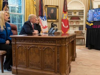 美国总统川普与国际空间站女太空人Peggy Whitson通...