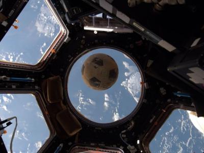 鬼冢的足球在太空站飘浮。金布罗将足球带上太空站。...