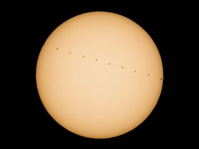 NASA放出一张太阳前有多个细小黑影的相片。“黑影”...