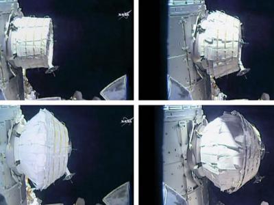 国际太空站充气式太空舱充气成功。 视频:国际太空站充气式太空舱充气成功。...