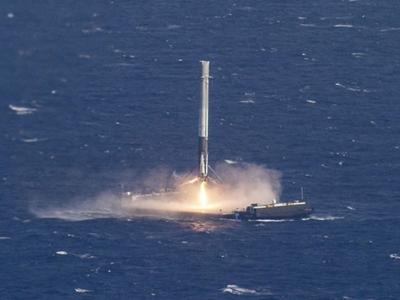 SpaceX公布火箭着陆片段。 火箭成功将一枚亚洲通讯卫星送上轨道后,迅速返回地...