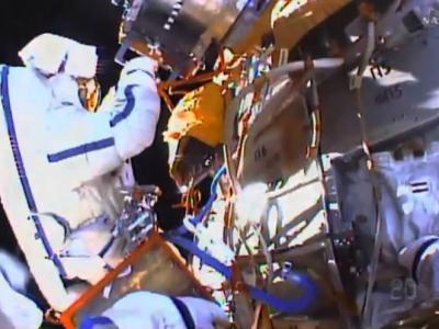 国际太空站的俄罗斯太空人步出太空站进行