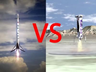 Blue Origin(右)挑战SpaceX(左)成功。 New Shepard太空火箭升空(左)后,...