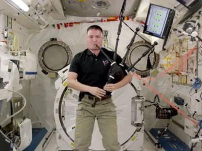 美国宇航员杰尔·林格伦在国际空间站吹奏风笛纪念已故同事 林格伦是国际空间站...