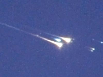 WTF1190F在大气层坠落燃烧 从另一个角度看,空中小小的光点就是WTF1190F(红圈...