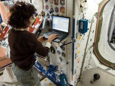 空间站的宇航员在使用笔记本访问互联网,相比较笔记本电脑,他们现在更青睐方便的...