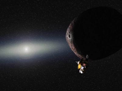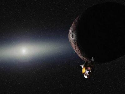 NASA新视野号宇宙飞船在遥远的柯伊伯带遇到的一颗类似冥王星的天体的艺术家印象图...