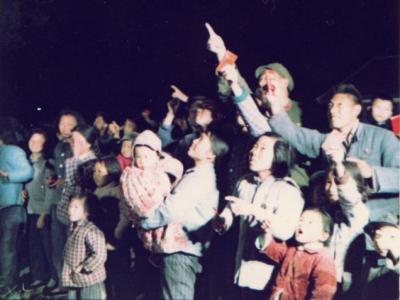 中国东方红一号人造地球卫星成功发射45周年 广大群众争相仰望天空搜寻东方红一...