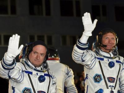 太空人凯利(左)上月与俄罗斯太空人科尔尼扬科升空。 (蜘蛛网报道)美国太空人...