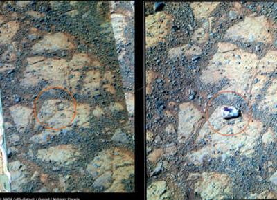 机遇号附近出现的不明物体,前后对比图 (蜘蛛网)据新浪科技(晨风):雅虎新闻...