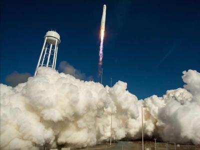 美国轨道科学公司成功发射“天鹅座”飞船 (蜘蛛网)据新华社(比尔·英格斯摄...