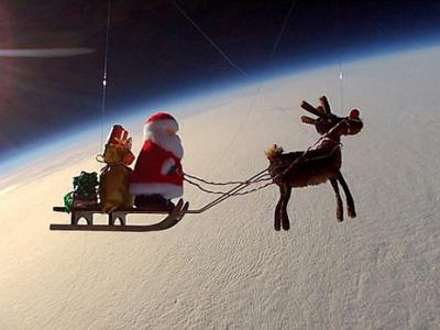 英国科技发烧友利用气象气球将圣诞老人和拉雪橇的驯鹿送上太空边缘 ...
