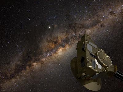 艺术家笔下的新视野号宇宙飞船。鸣谢:塞尔日·布鲁尼耶/马克·波兹曼/丹·杜尔达(...