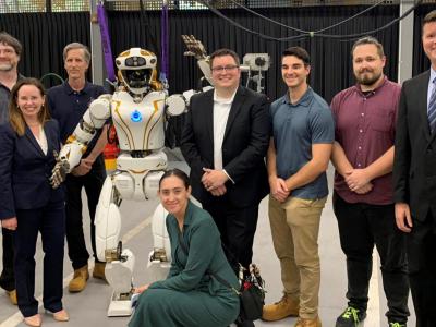 美国宇航局的灵巧机器人团队和美国国务院代表与美国宇航局的瓦尔基里机器人在伍德赛...