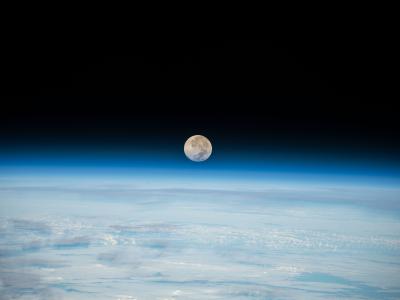 国际空间站拍摄的满月正落在地球地平线以下,它在太平洋上空262英里的轨道上运行。...