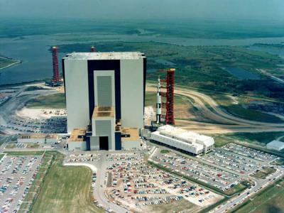 1966年,美国宇航局肯尼迪航天中心和飞行器装配大楼的俯视图。(图片来源:NASA)(蜘...