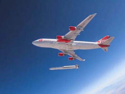 美国维珍轨道公司的波音747运输机宇宙女孩在2019年7月的跌落测试中拍摄了释放该公司...