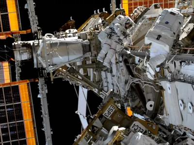太空行走的宇航员在国际空间站外安装了一