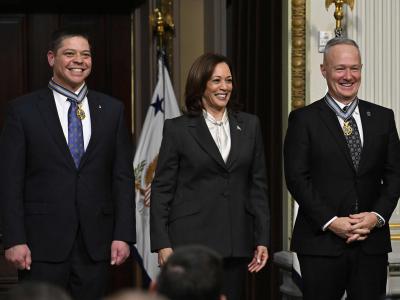 2023年1月31日,星期二,美国国家航空航天局前宇航员罗伯特·本肯(左)和道格拉斯...