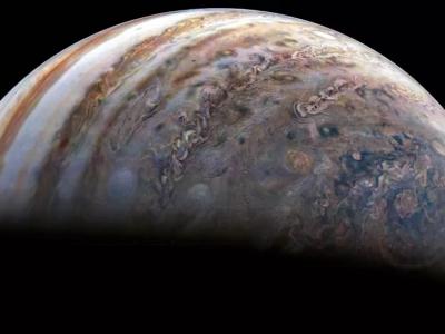 朱诺相机在任务的第48次飞越中拍摄到的木星图像。(图片来源:NASA/JPL/SwRI/MSSS/...