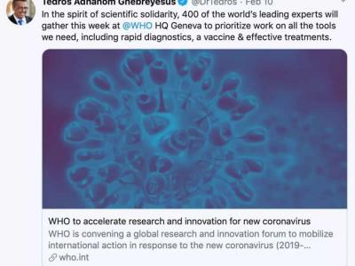 世界卫生组织总干事谭德赛宣布将新型冠状