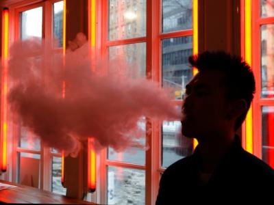 图中男子吸食电子烟,喷出蒸气。 (蜘蛛网报道)美国研究人员周三表示,当电子烟...
