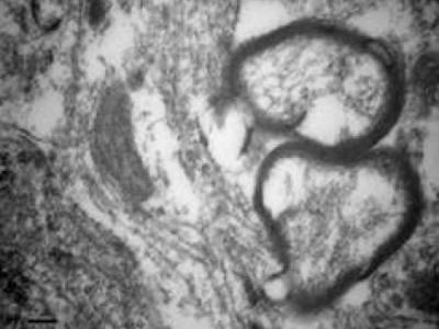 电镜下(× 3 500)见给予胺碘酮的新生鼠海马组织微管排列紊乱 最近的研究发现,全...