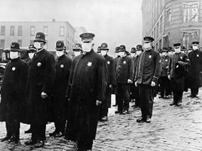1918年西班牙流感爆发时的美国,警察上街也得戴上口罩 据英国《每日邮报》10月1...