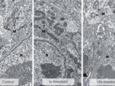 左图为对照,中图显示0.8焦耳/平方厘米的激光未对心脏造成伤害,右图显示能量提高...