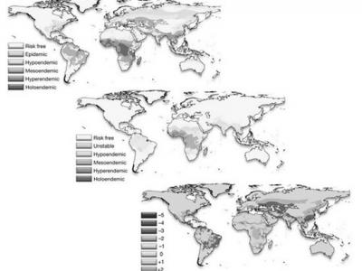 1900年的疟疾全球发病区域(上)与近几年的发病区域(中),而发病率增加的地区仅...
