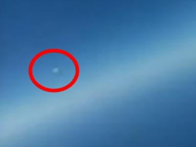 军方相信画面中的三角形物体是光通过夜视镜的视觉伪影小型物体(红圈)在美军军机前...