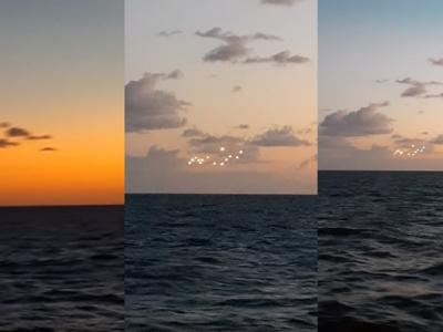 UFO?美国北卡罗莱纳州外海黄昏海面天空出现14个奇异光点(蜘蛛网eeook.com报道)据...