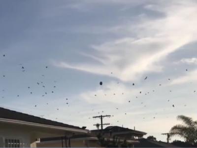 发现外星人?美国洛杉矶上空惊人一幕 几十只乌鸦围绕神秘物体...