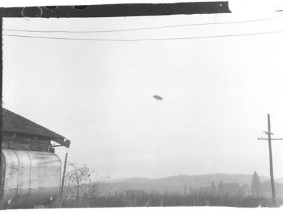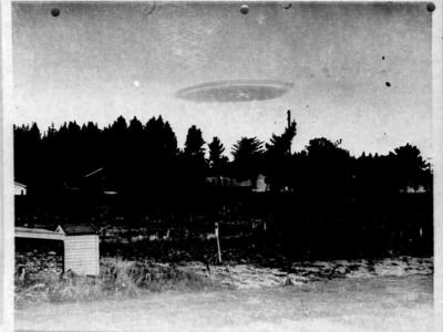 摄于内布拉斯加州的一张照片中,可见有一物体倾斜向上。 罗斯韦尔曾有数个圆形...