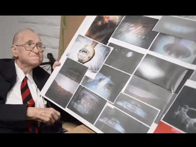 布什曼展示声称属外星人真身的照片 布什曼展示UFO照片 有人指布什曼照片中...