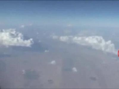 白色、呈圆碟形的UFO(红圈示)在右下方飞过 网民指UFO(红圈示)的形状不太可能是...