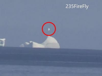 一个白色物体(左红圈)漂浮在冰山上,另一个白色物体(右红圈)突然出现在半空。 (...