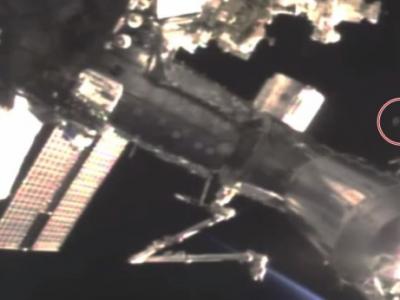 监控视频拍到疑似UFO(红圈)飞近国际空间站 被指是UFO(红圈)的物体在国际空间站...