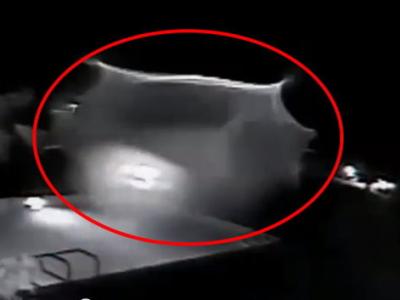 美国住宅区视频监控拍摄到UFO在泳池上空