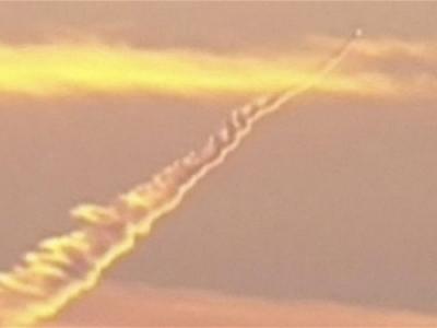 美国哥伦比亚广播公司直升机在加利福尼亚州上空拍摄到一枚神秘导弹 美国哥伦比亚...