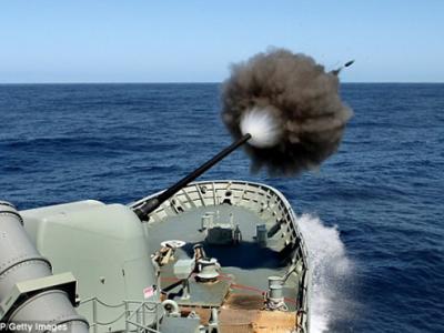 摄影师安德鲁·大金捕捉到澳大利亚海军战舰“安萨克”号火炮发射瞬间的精彩照片 ...